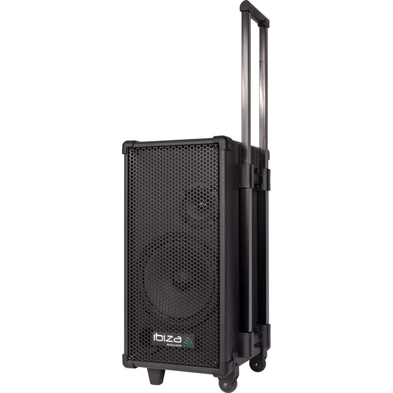 Aktief 2-Wege-System met 8″” / 20cm Subwoofer en 3″” / 7,5cm Hoog- en middentoon. 40W RMS en 160W max vermogen Duidelijk geluid. CD-Player die zowel gewone als Mp3 cd’s afspeeld. USB ingang voor het afspelen van MP3 bestanden vanaf een USB stick. Ingebouwde accu voor als er geen netstroom aanwezig is. Microfoon volume regelbaar tevens echo functie (ook regelbaar) Afmetingen 26 x 53 x 30cm Gewicht: 12,1kg
